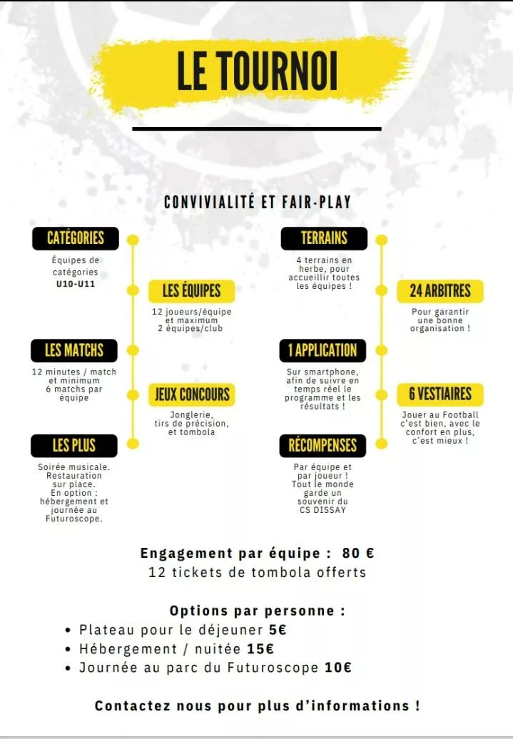 Tournoi en salle 2025 U13 de l’US Cheminots – Alès Tournoi National 2026 U9, U11 & U13 Niveau D1 & D2 de l’ASPTT Brest Tournoi 2026 U8 du DC Lallaing USSD Cup 2026 U17F & U18F – Saint-Denis-de-Pile Challenge Momo Amamra 2025 U15 de l’ASD – Saint-Donat-sur-l’Herbasse Plateau de rentrée OGFC 2025 U9, U10 & U13 – Labastide-Saint-Sernin