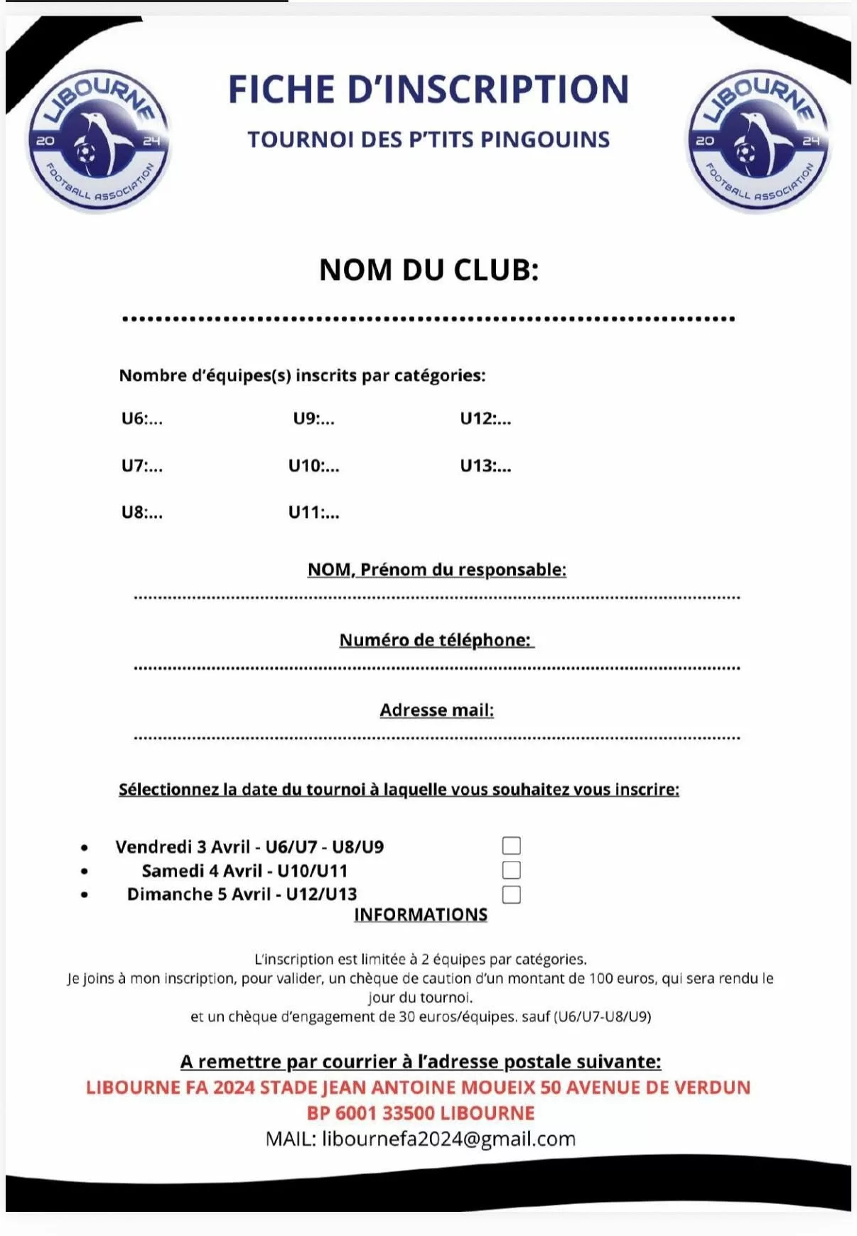 Le club de libourne (33) es heureux de vous inviter pour cette deuxième éditions du tournois des Pingouins