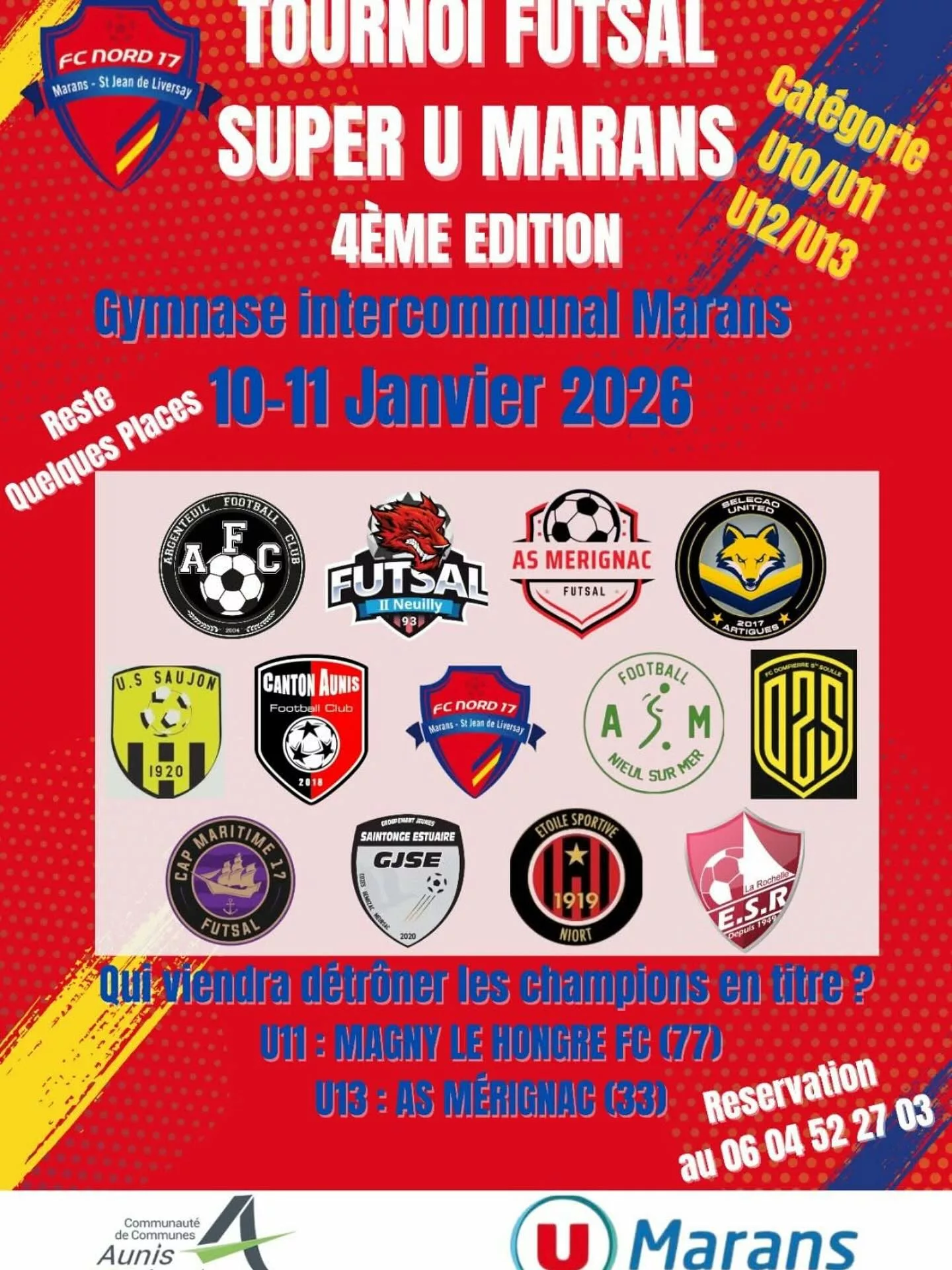 https://www.helloasso.com/associations/fc-nord-17- football-marans-saint-jean-de- liversay/evenements/fc-nord- 17-4-eme-edition-tournoi- futsal-super-u-marans-u11-et- u13