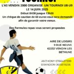 Tournoi U7 de l’AS Vendin – Vendin-lès-Béthune Tournois Seniors et Seniors F de l’AS Vendin – Vendin-lès-Béthune Tournoi U9 de l’AS Vendin – Vendin-lès-Béthune Tournois U9 et U11 du CS Rosny Foot – Rosny-sur-Seine Challenge U13 de l’ES Vendin Football – Vendin-le-Vieil Sampoutaire Girl’s Cup U11F et U13F du FC Saint-Paul-en-Jarez