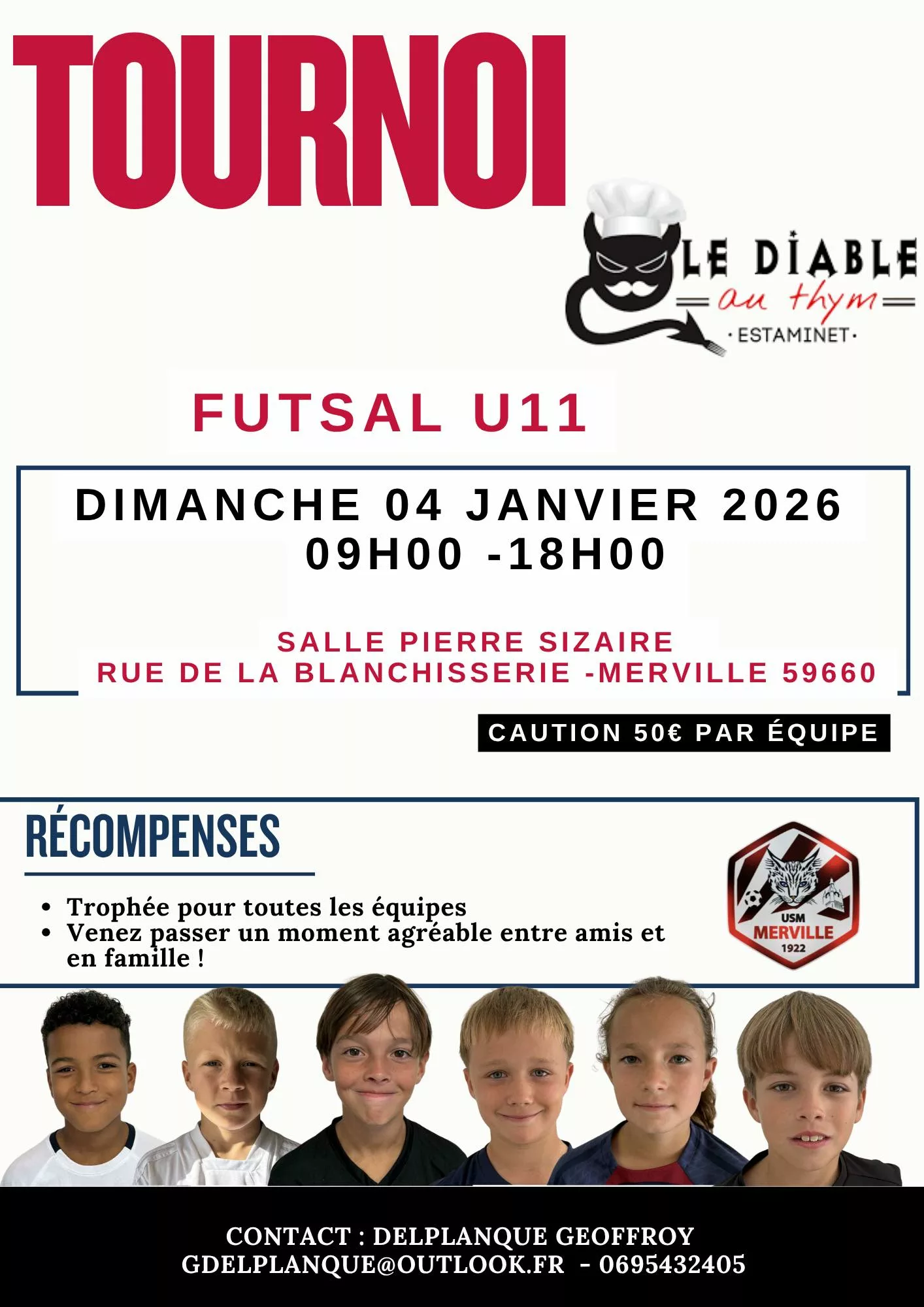 Tournoi Le Diable au thym 2026 U11 de Merville Tournoi U16 de Merville Tournoi Futsal U11 de Merville Tournoi Futsal U10 de Merville Tournoi Futsal U9 de Merville Tournoi U11 de Liévin