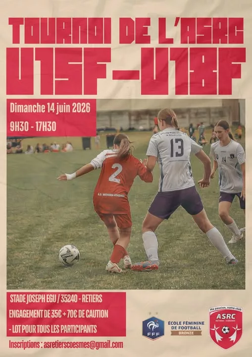 L’Association Sportive Retiers Coësmes (35) organise son tournoi FEMININ le dimanche 14 juin 2026 pour les U15F et U18F.