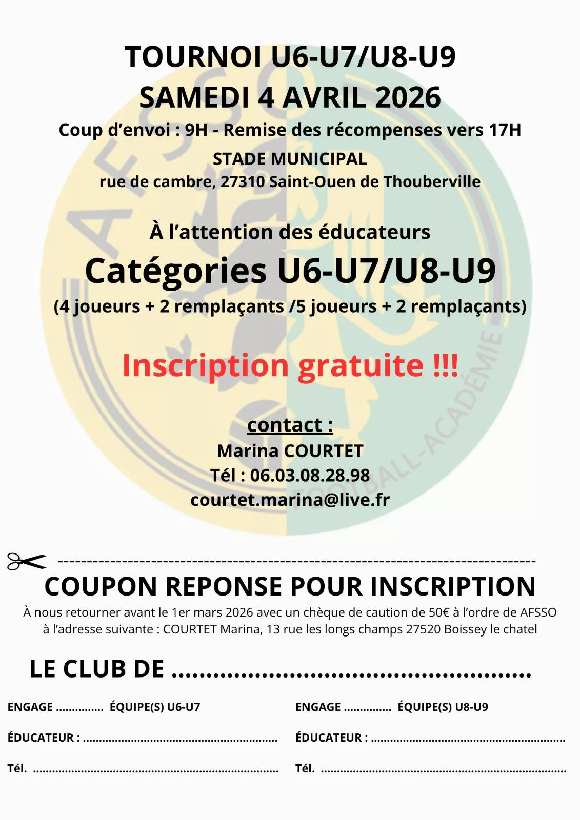 Tournois 2026 U7 & U9 de l’AFSSO Football Académie – Saint-Ouen-de-Thouberville