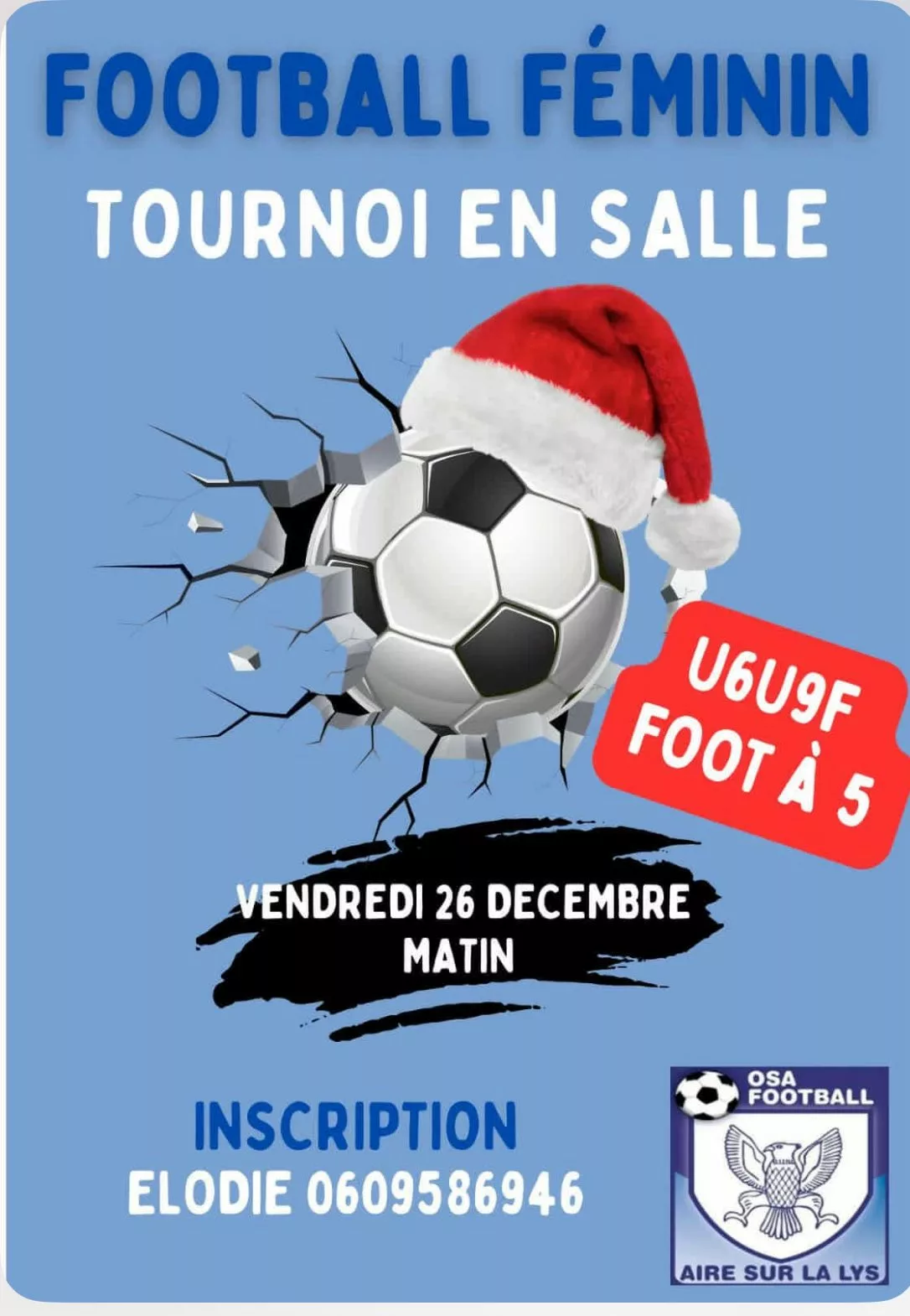 Bonjour à tous, n’hésitez pas à vous inscrire tournoi Féminin en salle à 5.