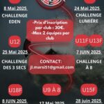 Tournoi amical 2025 U12 de l’AS Caissargues Tournoi U13 niveau 1-2 du FC Lançonnais – Lançon-Provence Tournoi Robert Cazes U9 et U13 du Séméac Olympique Football Tousnoi U11 et U13 de l’US Planaise – Plan-d’Orgon Challenge Limière U11 de l’ESC La Ciotat Tournoi U11 de Douchy-les-Mines