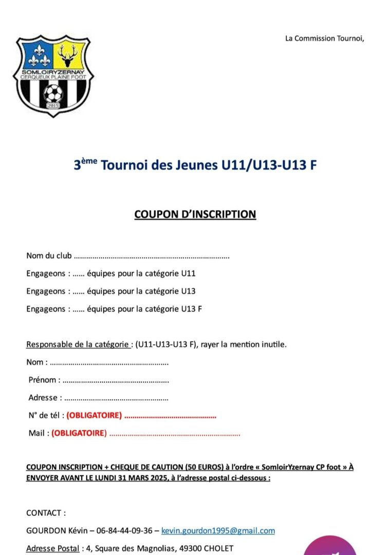 Tournois U11, U13 et U13F du Somloir Yzernay CP Foot