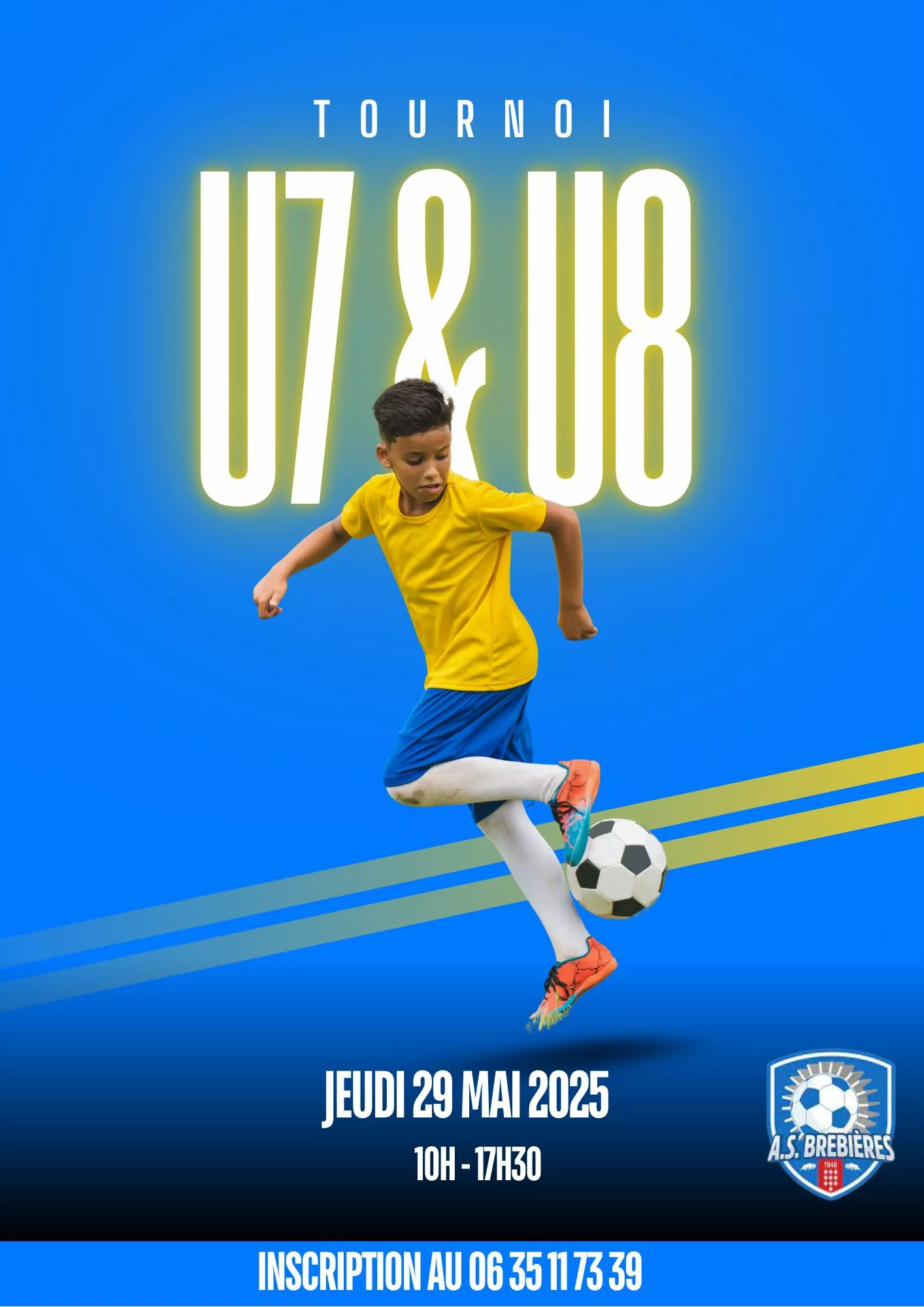 L’AS Brebières organise un tournoi U7 et un tournoi U8 gratuit le jeudi 29 mai (10h-17h30). Plusieurs équipes par club possibles, buvette et restauration sur place. Ça vous tente ?