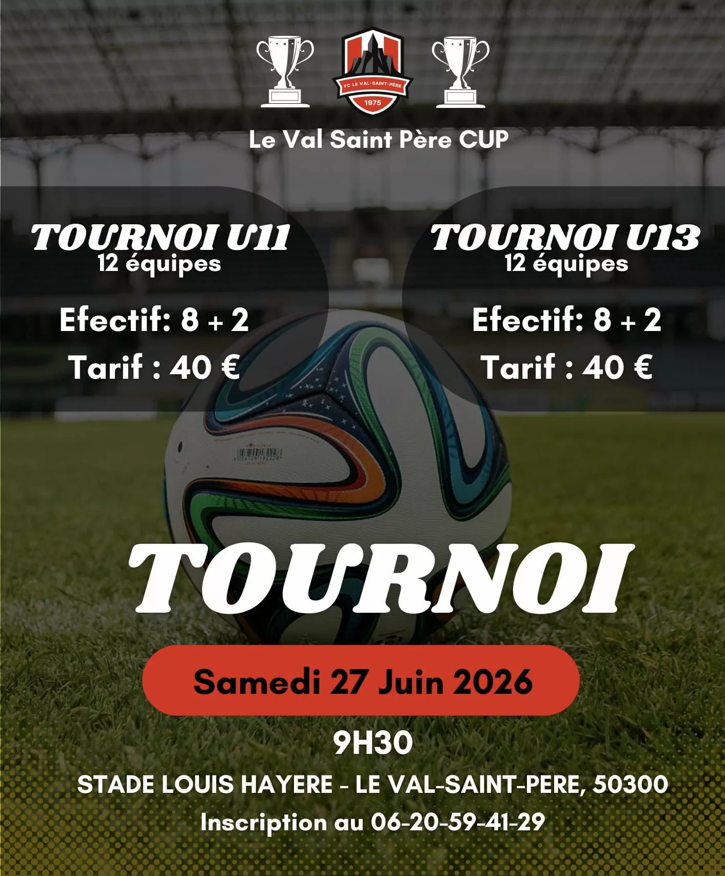 Le Fc Val St Pere organise la troisième Édition de son tournoi U11 et U13 le samedi 27 Juin 2026. (50, au pied du Mont Saint Michel)