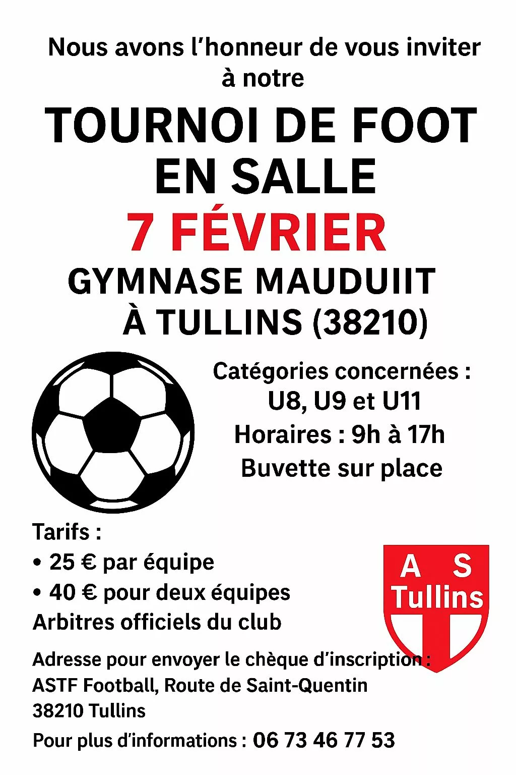 US Ruy-Montceau serait ravi de vous accueillir pour son tournoi futsal les 16-17-18 janvier.Pour plus de renseignements n'hésitez pas à nous contacter.