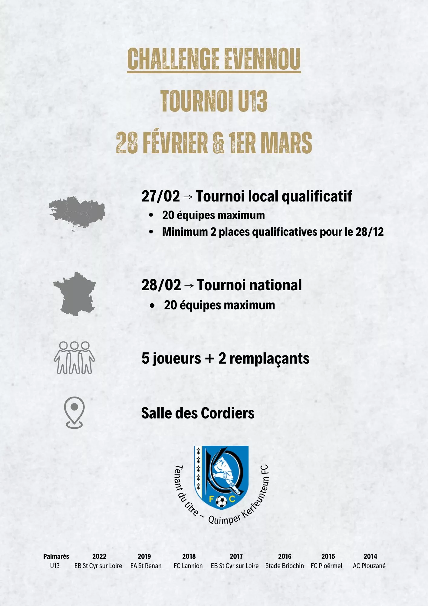 Ergué-Gabéric Ergué-Gabéric, FranceC'est déjà l'heure des candidatures pour les tournois qualificatif du challenge SEBACO Foot Ouest Indoor ! Envie de participer à la 25ème édition du challenge SEBACO ? Remplissez ce questionnaire et votre demande sera traitée par la commission sportive ! https://forms.gle/7jdyHpuRWSG3BcyJ7#challengesebaco2025