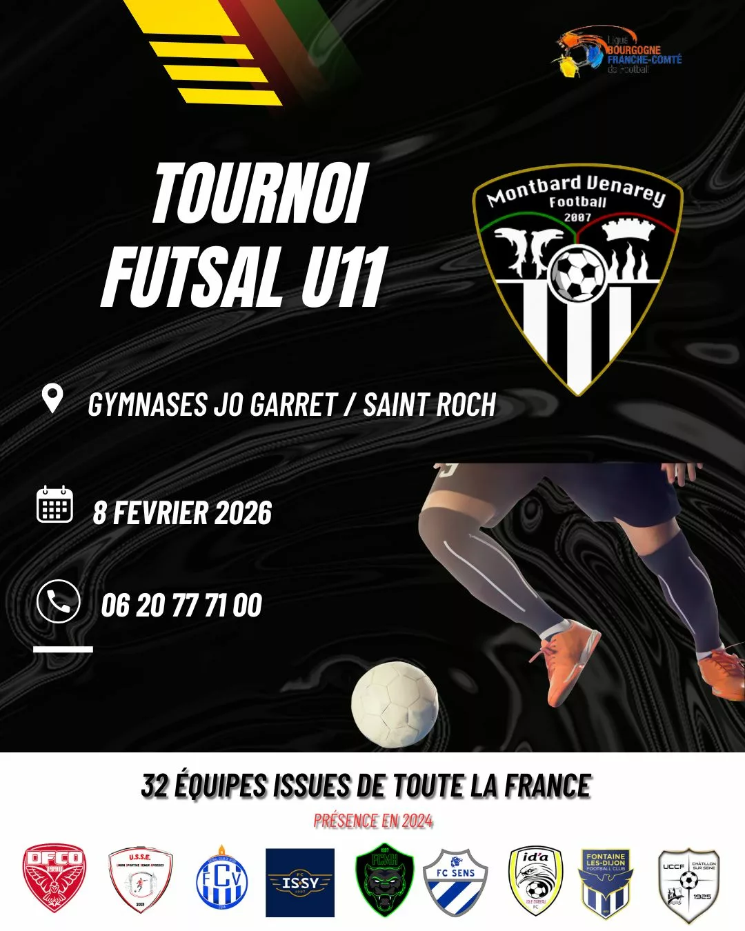𝗟𝗘 𝗧𝗜𝗠𝗚 𝟮𝟬𝟮𝟲 𝗔𝗥𝗥𝗜𝗩𝗘 ! Le Tournoi International de Futsal U12 Michel Gallot revient pour sa 42e édition à Dijon les 21 et 22 février 2026 ! 6 équipes qualifiées – Sélectif Côte-d’Or Le 11 novembre 20254 équipes qualifiées – Sélectif Hors Côte-d’Or Le 1er novembre 2025Des clubs prestigieux étaient présents lors de la dernière édition : Manchester City – Juventus […]