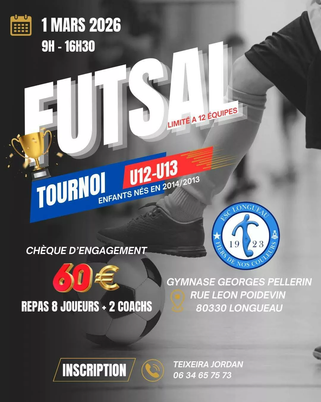 Notre tournoi l’Entrepôt – 𝐅𝐮𝐭𝐬𝐚𝐥 𝐊𝐢𝐝𝐬 𝐂𝐮𝐩 est lancé et il continue de se remplir ! Tournoi futsal destiné aux catégories U6/U7 à U12/U13 Gymnase Municipal d’Eu (avec tribunes) 21 & 22 février 2026 ProgrammeSamedi 21/02 U8–U9 (matin) → COMPLET U6–U7 (après-midi) → 3 places restantesDimanche 22/02 U12–U13 (matin) → 3 places restantes U10–U11 (après-midi) → 3 places restantes Récompenses pour toutes les équipes Contact inscriptions […]