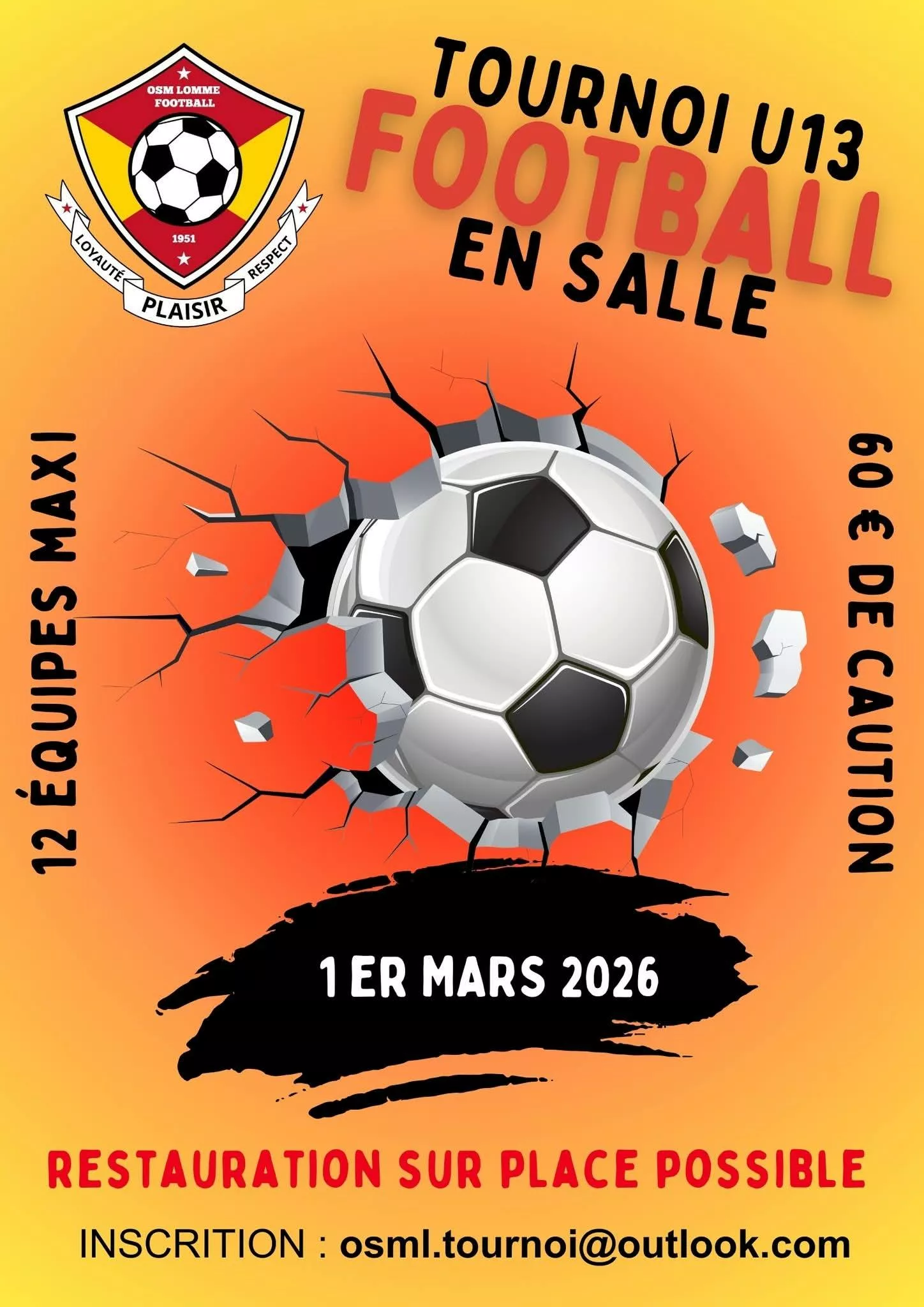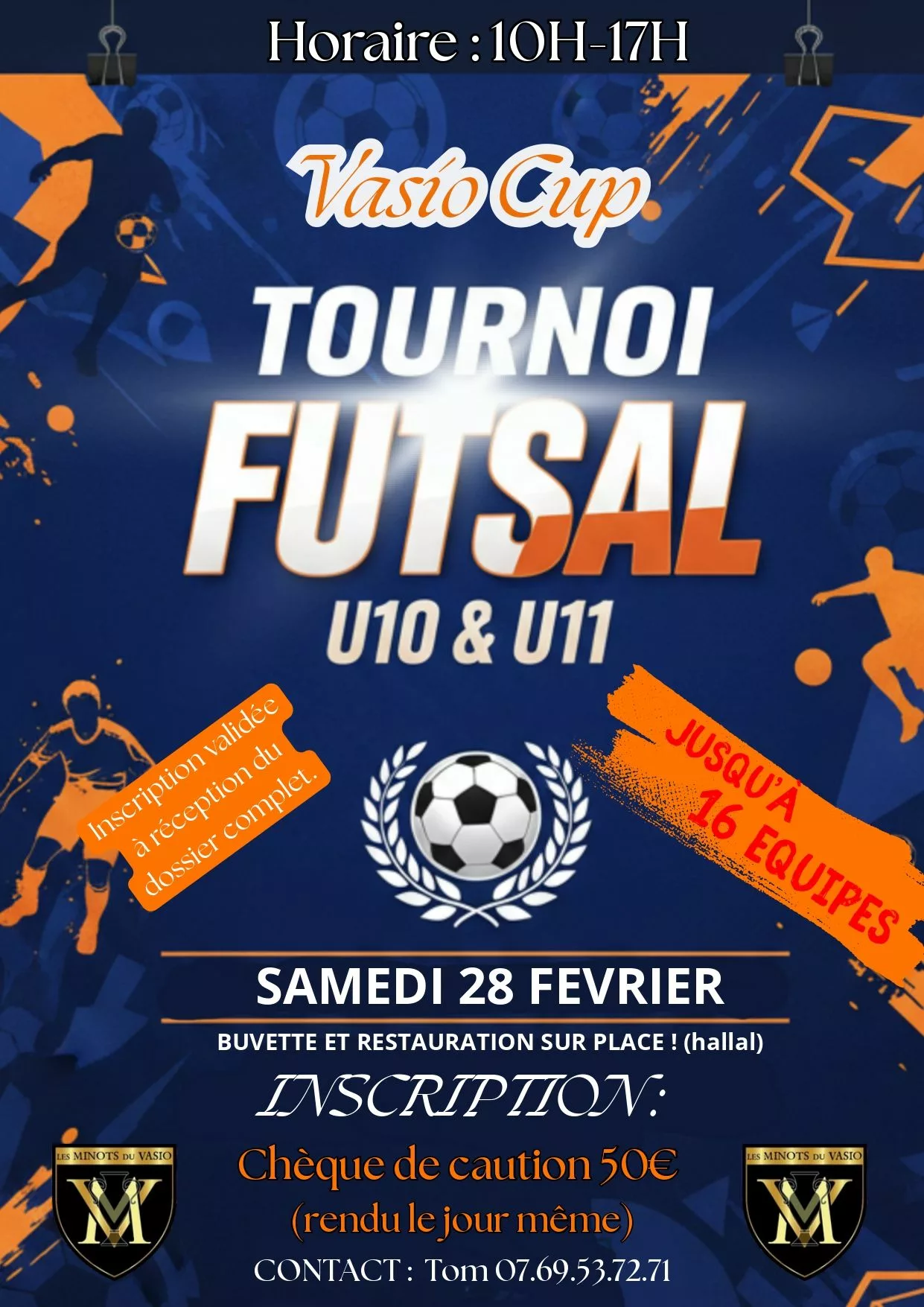 Suite à un désistement je suis à la recherche d’une équipe U13 pour notre tournoi en salle qui aura lieu le 7 février à 15H.N’hésitez pas à me contacter si vous êtes intéressé !Je vous met également la plaquette d’inscription avec mes coordonnées |