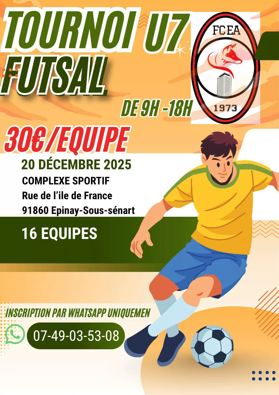 Futsal U7. 16; équipes Futsal U8. 16 équipes Inscription uniquement par WhatsApp au numéro sur l'affiche.