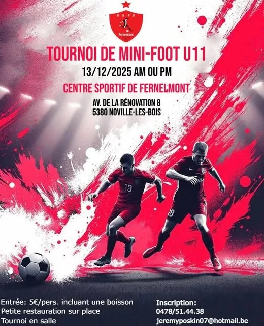 nous organisons un tournoi futsal u15 le samedi 20 décembre. Possibilité d’y inscrire une ou deux équipes. Renseignements et inscriptions (cf photo)
