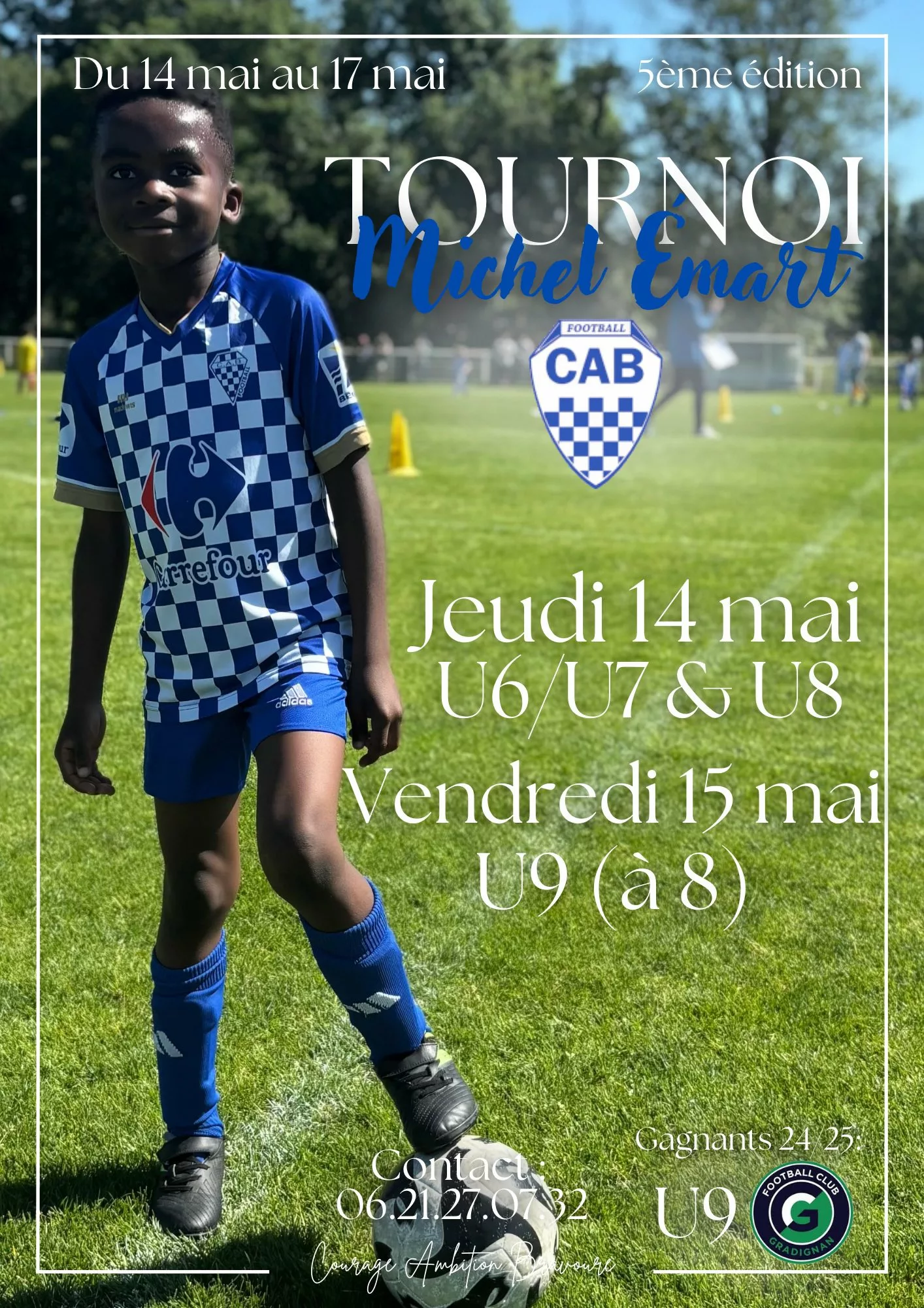 Notre club organise son traditionnel tournoi annuel.Vous trouverez en pièce jointe l'affiche et tous les renseignements nécessaires.Nous serions très heureux de vous accueillir sur nos terrains.SportivementMarcoUS COUTRAS FOOTBALL