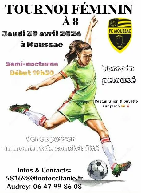 Moussac Moussac, FranceSemi-nocturne – Veille de jour férié !Avis aux passionnées ! Venez participer à notre tournoi féminin à 8 dans une ambiance chaleureuse, conviviale et pleine de bonne humeur Date : Jeudi 30 avril 2026 Début des matchs : 19h30 Lieu : Moussac Au programme : Matches dynamiques et fair-play Ambiance festive Restauration rapide sur place Buvette pour se régaler entre deux matchsQue vous […]