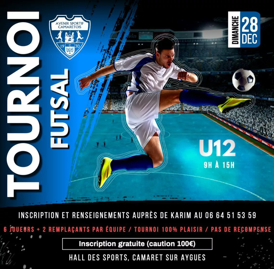 Éducateurs, préparez vos équipes ! Le dimanche 21 décembre, le Hall des Sports de Camaret-sur-Aygues accueille son tournoi Futsal Un rendez-vous 100% plaisir, compétition et convivialité ! Catégories & horaires : U10 → 9h à 15h U11 → 15h30 à 21h30 Seulement 8 équipes par catégorie ! Inscription gratuite (caution 100€) Ambiance garantie, esprit fair-play […]