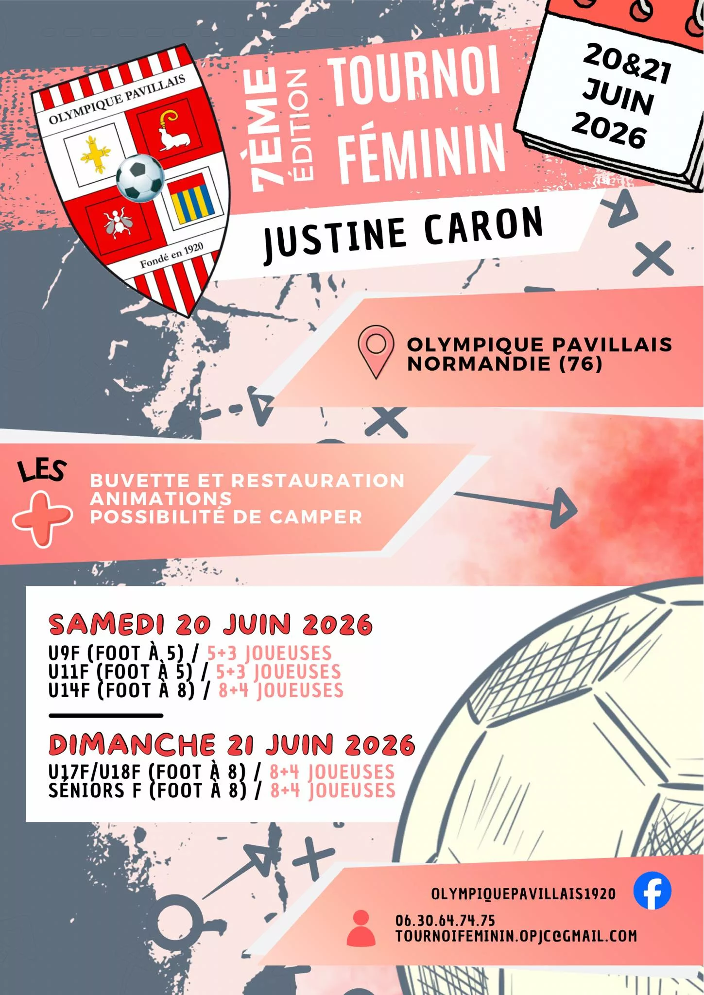 7ÈME ÉDITION TOURNOI JUSTINE CARON Pour participer à une belle fête du football féminin, une seule date à retenir : 20&21 Juin 2026 Pavilly (76) - 25km de Rouen GO INSCRIPTIONS !N’hésitez plus, infos […]