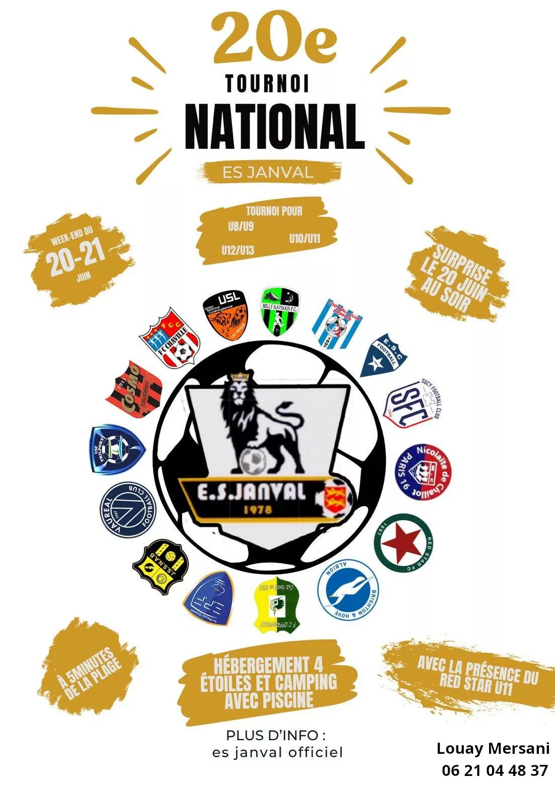 J’ai le plaisir de vous transmettre l’affiche de notre 20ᵉ Tournoi National de Football Lieu : Dieppe (Seine-Maritime – 76) À seulement 5 à 10 minutes de la plage, idéal pour allier sport et plaisir ! Dates : Week-end du 20 & 21 juin Catégories : de U9 à U13 Notre tournoi rassemble chaque année […]