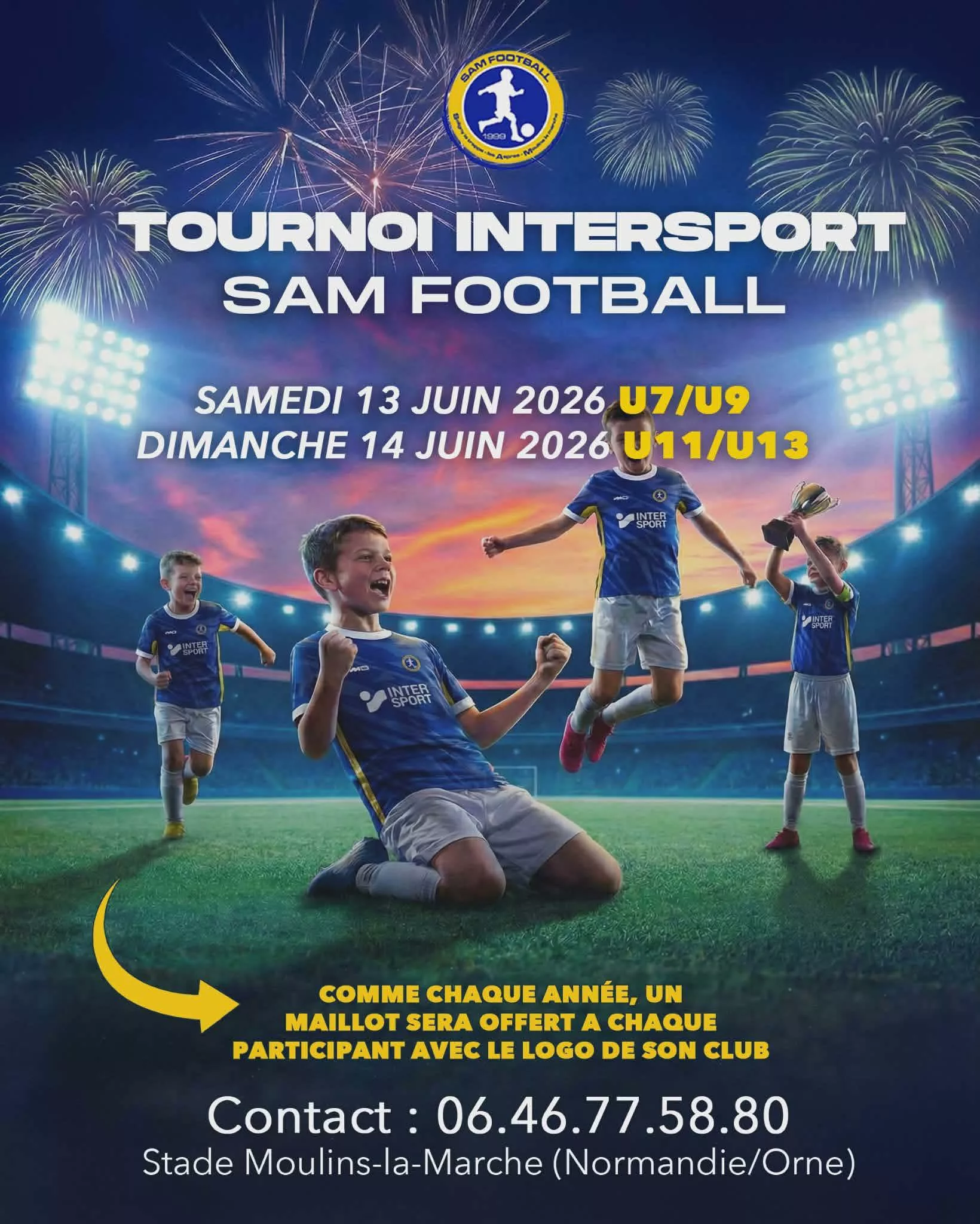 Bonjour Tournoi U16 à U13 en journée et semi nocturne le samedi 6 juin 2026 !