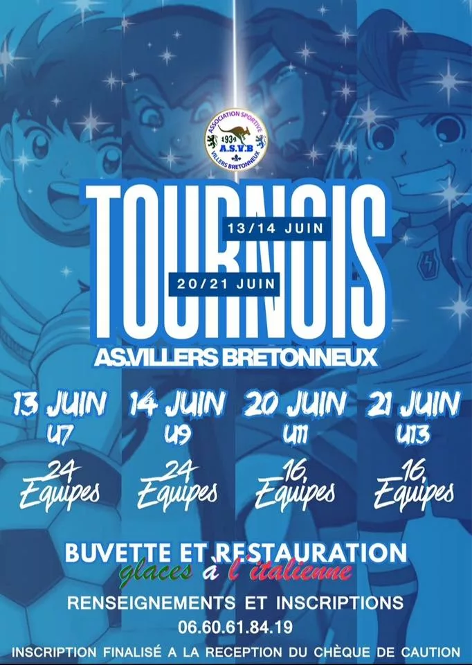 L’ES Angres organise ses traditionnels tournois en herbe de printemps Pour les inscriptions : U6-U7 https://forms.gle/YfvyUDvbQRcirPYY6 U8-U9 https://forms.gle/9sR5JPX5wnJKsNgA6 U10-U11 https://forms.gle/kYMWU5VCpAPLcWdWA U12-U13 https://forms.gle/th6hcXZf8Jr1oQ9Z8 U14-U15 https://forms.gle/Tw18Jd2tmJsP9NU26 U17 https://forms.gle/ZsUk67B3H2yjHpmHA U18 F https://forms.gle/h5vM49o7UwN3mpf46 Espérant vous compter parmi nous ! À bientôt, sur nos installations ! - L’équipe dirigeante