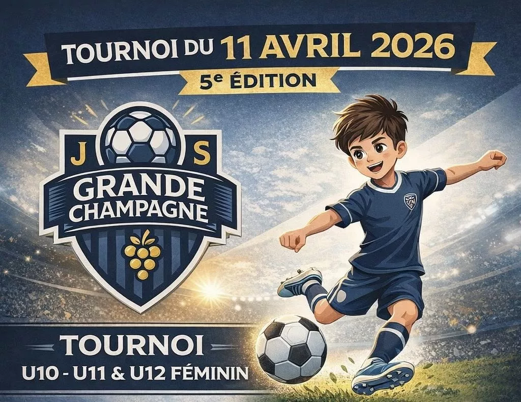 INVITATION – TOURNOI DE LA GRANDE CHAMPAGNE Le JS Grande Champagne est heureux d’inviter les clubs à participer à la 5ᵉ édition du Tournoi de la Grande Champagne Samedi 11 avril 2026 Catégories concernées : U10/11 & U12 Féminines Inscription : 50 € + chèque de caution (1er rendu - 1er inscrit) À gagner : […]