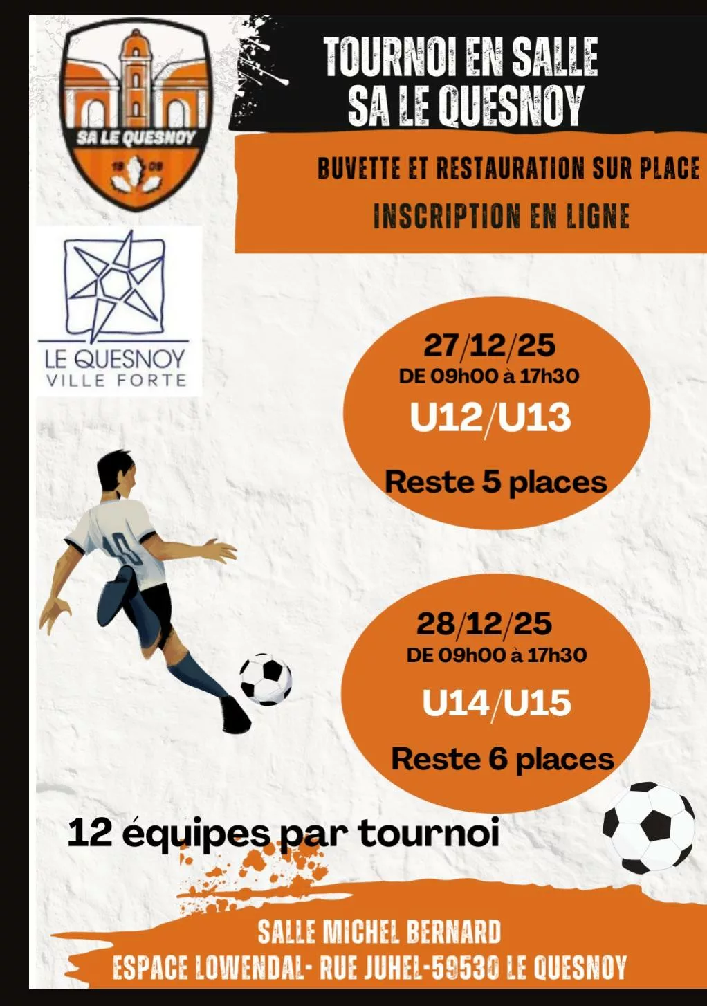 Le Quesnoy Le Quesnoy, FranceLE SAQ ORGANISE SES TOURNOIS EN SALLE ! Les dates à retenir Samedi 27 décembre 2025 → U12 / U13 Dimanche 28 décembre 2025 → U14 / U15 Samedi 3 janvier 2026 → U8 / U9 *COMPLET* Dimanche 4 janvier 2026 → U10 / U11 - Places limitées – inscrivez-vous vite ! - Buvette & […]
