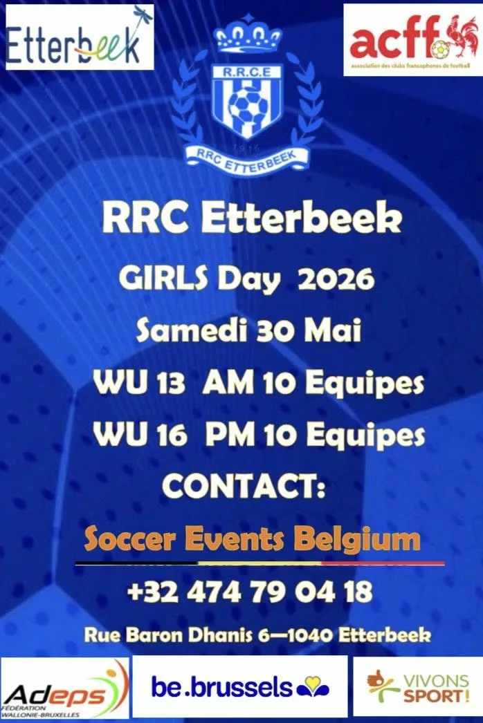 𝗥𝗥𝗖 𝗘𝘁𝘁𝗲𝗿𝗯𝗲𝗲𝗸 - 𝗚𝗶𝗿𝗹𝘀 𝗗𝗮𝘆 𝟮𝟬𝟮𝟲 𝗦𝗮𝗺𝗲𝗱𝗶 𝟯𝟬 𝗺𝗮𝗶 𝗔𝗠 : 𝗪𝗨𝟭𝟯 𝗣𝗠 : 𝗪𝗨𝟭𝟲 Demi-journée, 10 équipes par catégorie. Lien de présentation et inscriptions : https://www.tournify.fr/live/rrcetterbeek2026