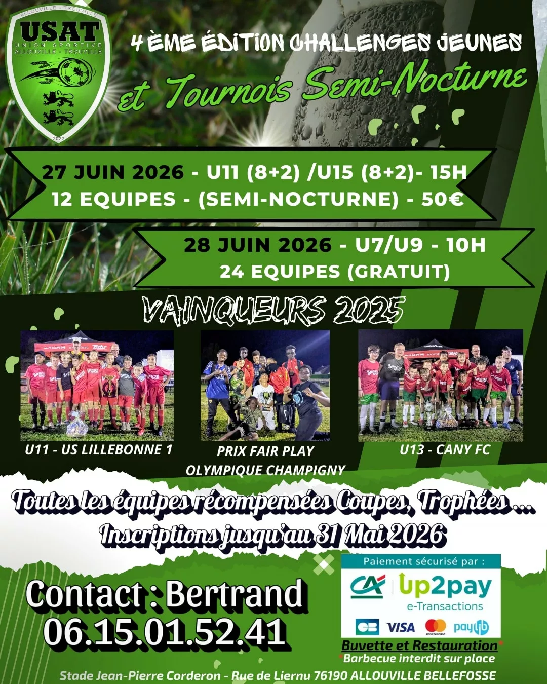 OUVERTURE DES INSCRIPTIONS ! Les Challenges U7–U9 et le Tournoi Jeunes semi-nocturne U11–U15 sont officiellement lancés pour l’édition 2026. Rendez‑vous les 27 & 28 juin 2026 pour deux jours de football, de […]