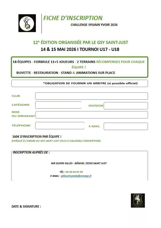 L’AS Beaurains a le plaisir de vous présenter son grand tournoi de Pâques 2026 qui se déroulera du samedi 04 au lundi 06 avril 2026 FOOT a 5U8/U9: samedi 04 avril journée complèteFOOT a 8U10/U11:samedi 04 et dimanche 05 avril (sur 2 jours )U12/U13:samedi 04 et dimanche 05 avril (sur 2 jours )FOOT a 11U15/U16:dimanche 05 […]