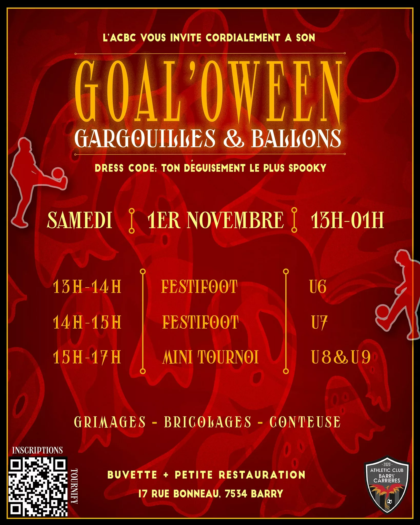Invitation Tournoi HalloweenU6 u7 u8 et u9Lien pour s'inscrire :www.tournify.fr/live/tournoihalloweenacbcLes enfants sont invités a venir déguisésMerci