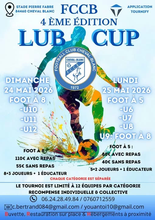 Le F.C. Cheval Blanc (84) organise son tournoi annuel le 24 et 25 Mai 2026 pour les catégories u6 à u12 La LUB CUP ! (4ème édition) Pour tout renseignement, […]