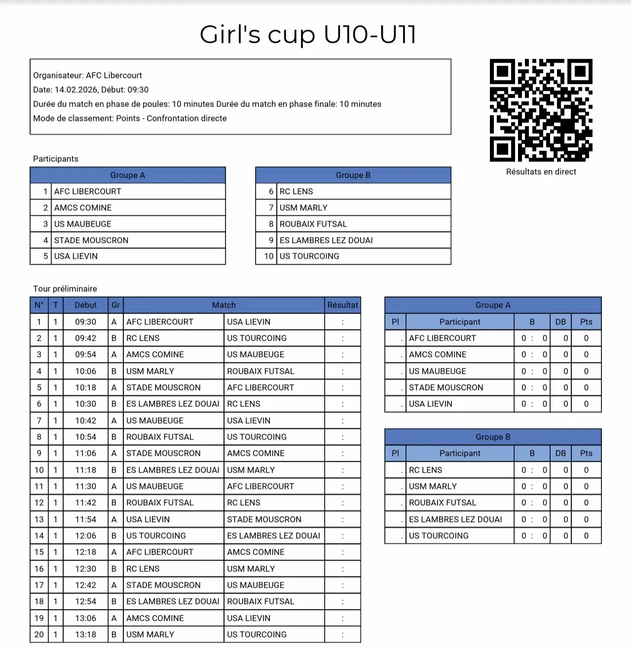 Suite à deux désistements, nous recherchons deux équipes U10 U11 féminines pour notre tournoi du samedi 14 février Vous remplacez le RC Lens et Usa Liévin https://www.facebook.com/groups/1537570016457196/user/100069042531456/